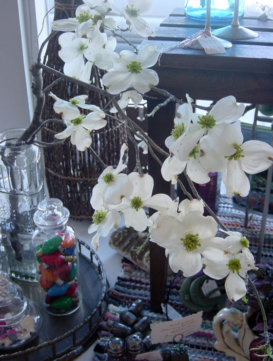 This month I am mad about Dogwood. I’m in awe of the way the blooms look like tiny little boxed packages then they suddenly burst open into these amazing four-leafed works of art. I’m trying to keep branches in the store to enjoy them but customers love them too and they often purchase them before they’ve been here a full day! If you would like some Dogwood, just give me a call and I’ll include your order in my next run to the Mart.