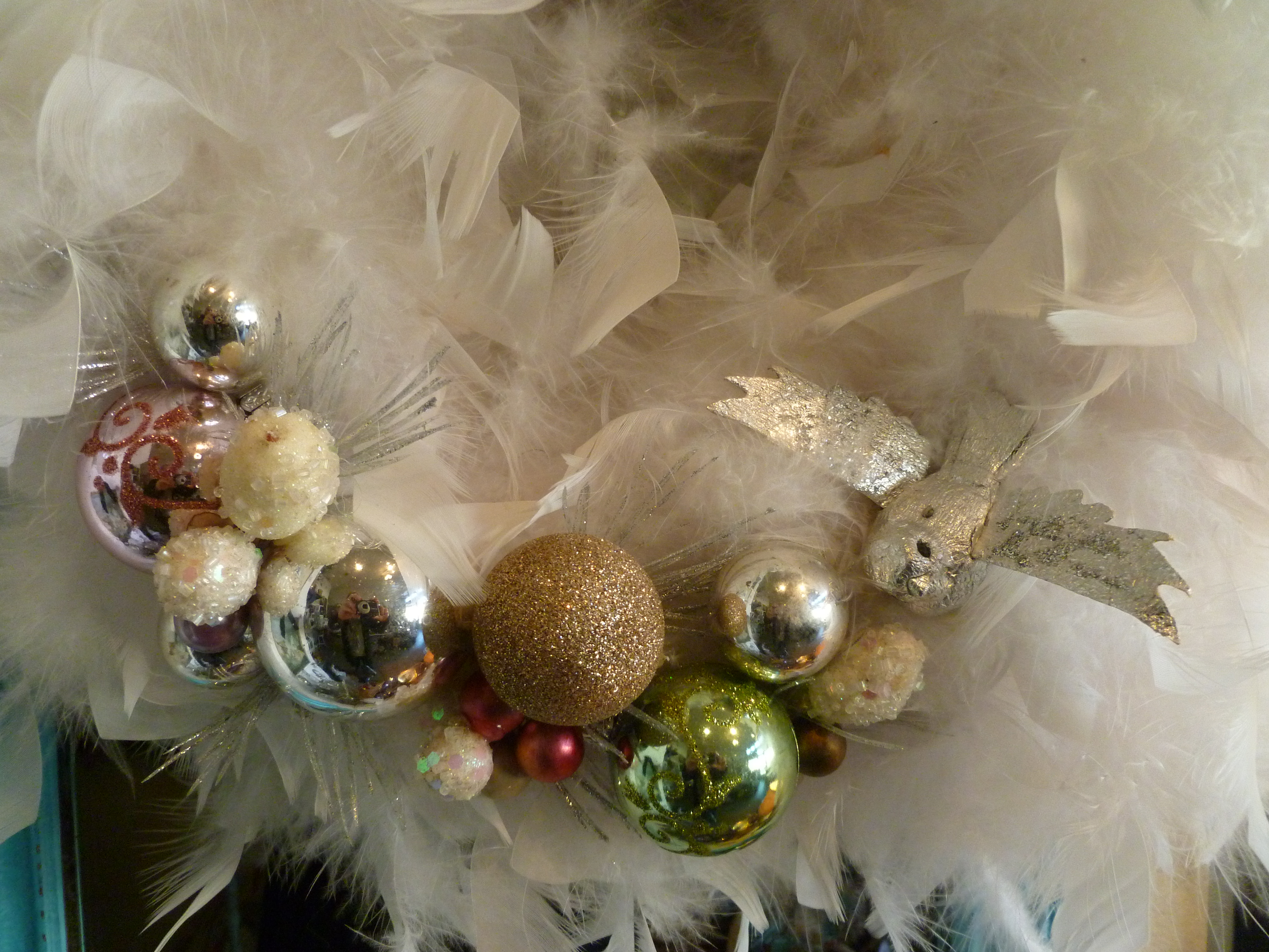 Feathers! Yes indeed feathers do say holiday in an unexpected, romantic, Bohemian kind of way. I use micro glitter to do feathers as it adheres more easily. Just rub a tiny bit of glue onto your finger, gently wipe it on the feather and then either dip into the glitter or scatter on. Once dried, you can pop a bunch of them into bud vases, crystal toothpick holders, or even sterling salt and pepper shakers (lid off) and place here and there throughout the house. I love them grouped together on tables mixed in with other decor. You can also tie a thin strand of silver ribbon to the end and hang them from the Christmas tree.