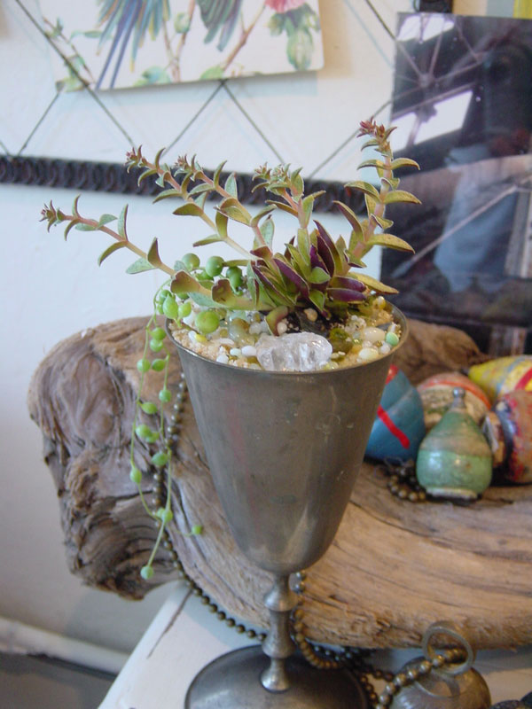 I also started making tiny gardens in other fun “containers” such as this 1950’s silver plated goblet