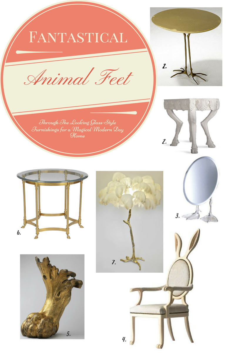 I’m excited to share my recently added duck-footed mirror in my powder room. It makes me smile every time I see it, and isn’t that the point? I put together a list of other animal-footed furnishings I’ve been coveting. Next time you’re searching for a way to add a little Alice in Wonderland to your world, think about adding animal feet!