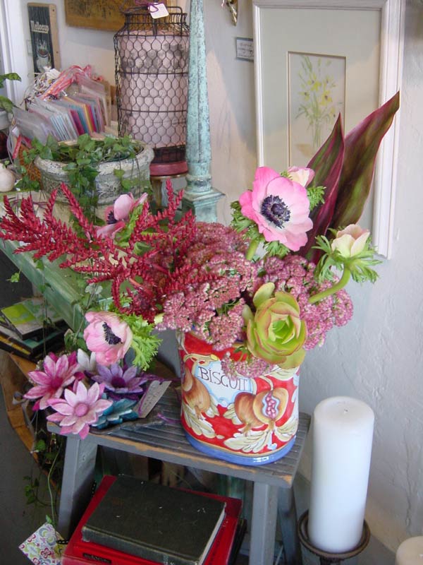 Please remember that we do a great deal of special order planting here. If you bring me a container of some kind, I’ll design in it! I also offer private or group floral arranging consults for a small fee. I don’t want to call them “classes” because that’s not really what I do, but if you want to learn a little bit about how I design, we can schedule a time to grab some amazing flowers, containers, and wine, and make some magic! Just give me a call.