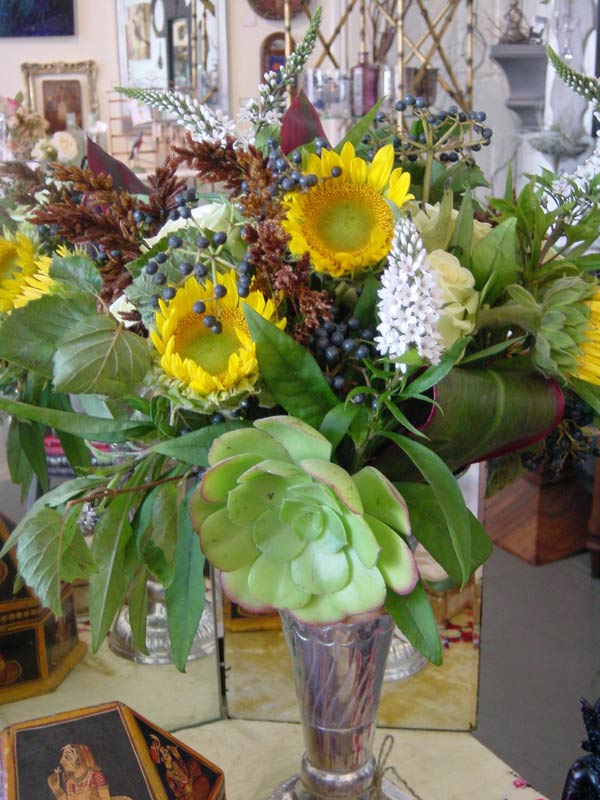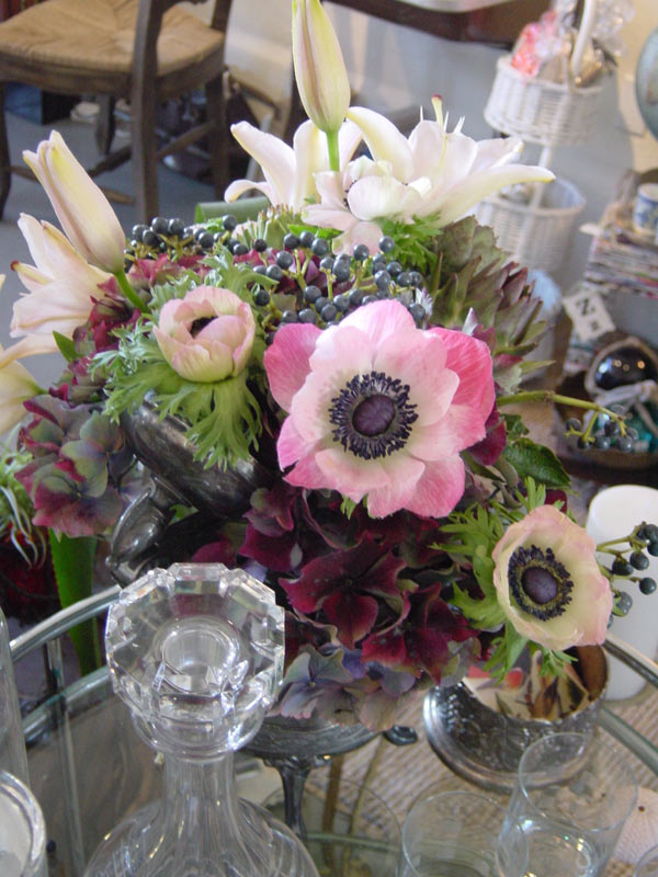 I want the arrangements I make to be interesting enough to cause people to stop and look at them for more than a moment. I want the receiver of the flowers to know that more than two minutes were spent putting it together or that their special blooms did not come off a standard menu or web site. I kind of shudder when I think of people receiving the “Big Bloom Bouquet” in the smiley face ceramic mug. Okay, nice thought that someone got you flowers. I do give them points. I just wish they would have given you flowers you had never seen in a vintage vase you would be excited to display on your bookcase long after the flowers had died. Sigh.