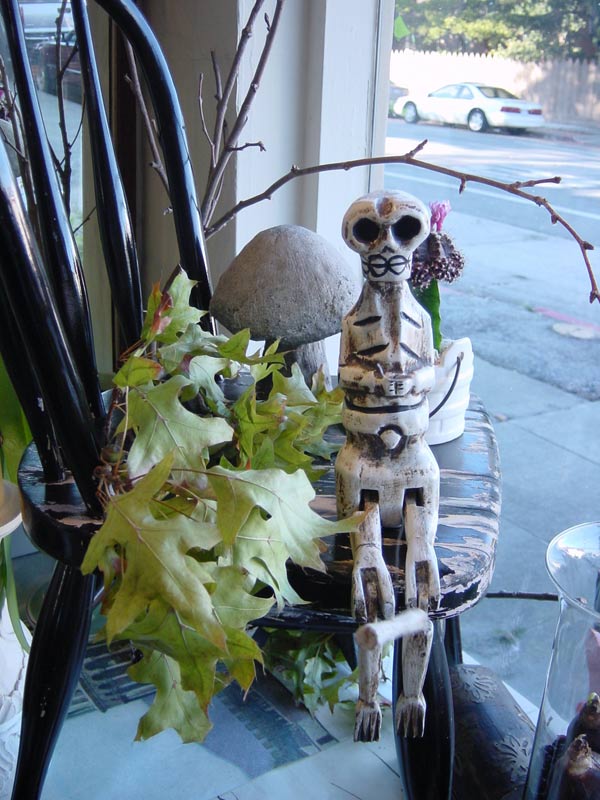 Don’t get me wrong, I love black, and have filled our shop windows with all things I consider a bit creepy, like antique black and white photos, candelabras and black chairs. However, I find skulls and skeletons curious and funny rather than scary.