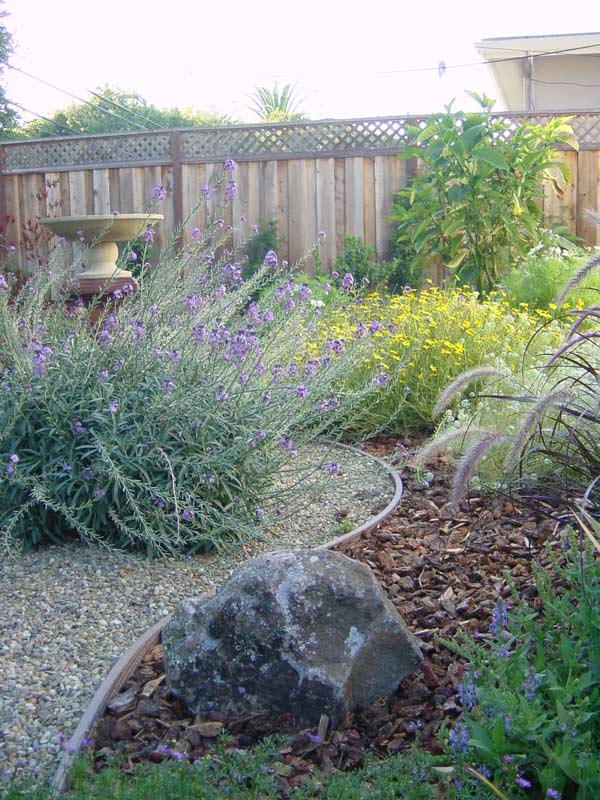 The log in the foreground is a chunk of Eucalyptus that Lara and Ian helped retrieve from the side of the busy El Camino in Burlingame. Driving by the tree-trimmers, I saw many cool pieces and had the idea to use a few in the landscaping. None of us had any idea that both of the two chunks we salvaged would weigh so much! Getting them into the car and into the back yard was an “adventure” I’m sure the McCulloughs won’t soon forget.